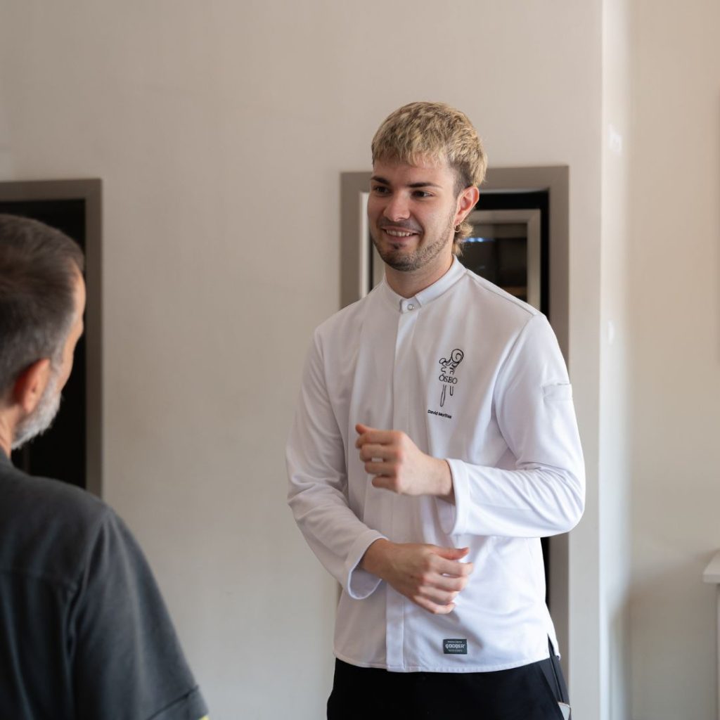 David nos recibe con una sonrisa y con las puertas abiertas de su mundo. Hablamos de sabores reales, de sueños y de cocina. Su paso por templos como Disfrutar, Celler de Can Roca o la escuela Hofmann le han dado el pulso y la disciplina, pero también una voz propia, la de un cocinero que observa con mirada clara, exigente y, aún así, inocente ante lo que queda por crear.