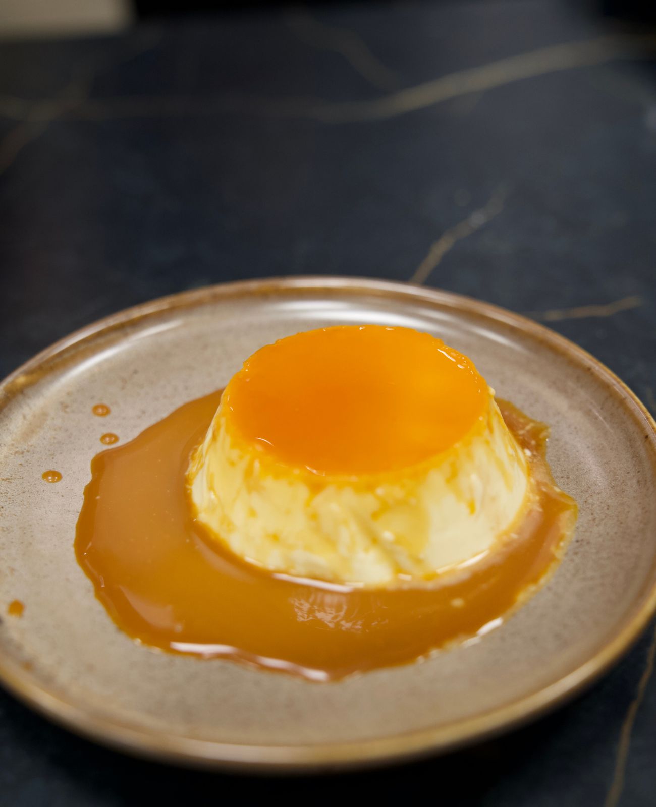 FLAN DE MANZANILLA Y ROMERO. Una genialidad, que maravilla! El “equipo Flan” se lo curró muy bien. Terminar la cena con un flan con sabor a camamil·la i romaní, sobre una salsa de tofee salado, con toque dulce, fue el mejor colofón a una sesión memorable. Por cierto, sobró un flan y hubo un conato de pelea para ver quién podía repetir. Es broma, o no…
