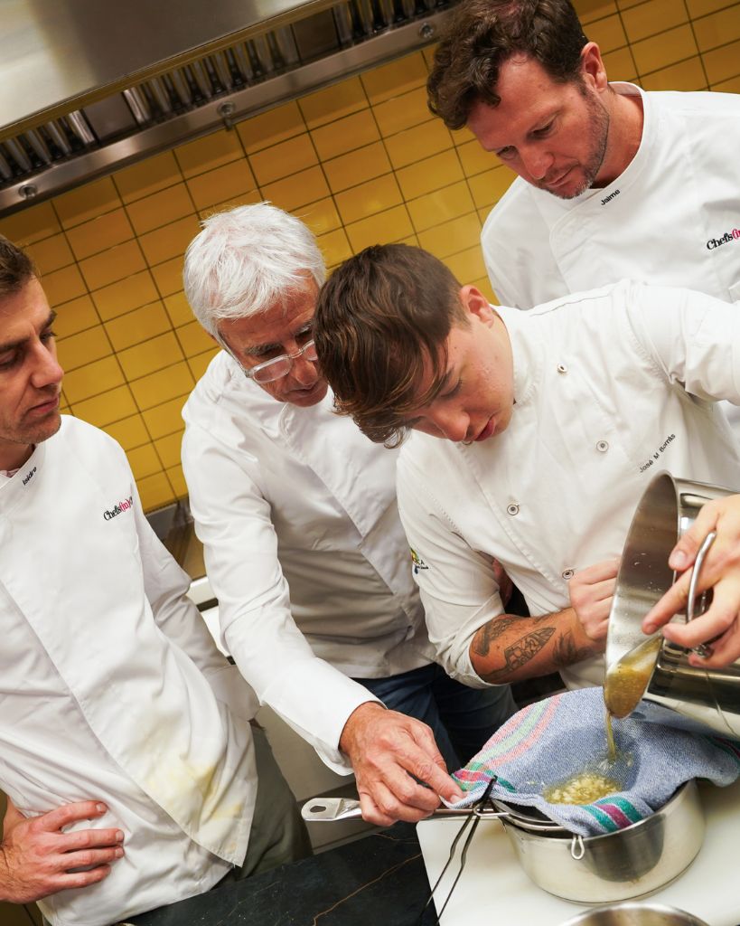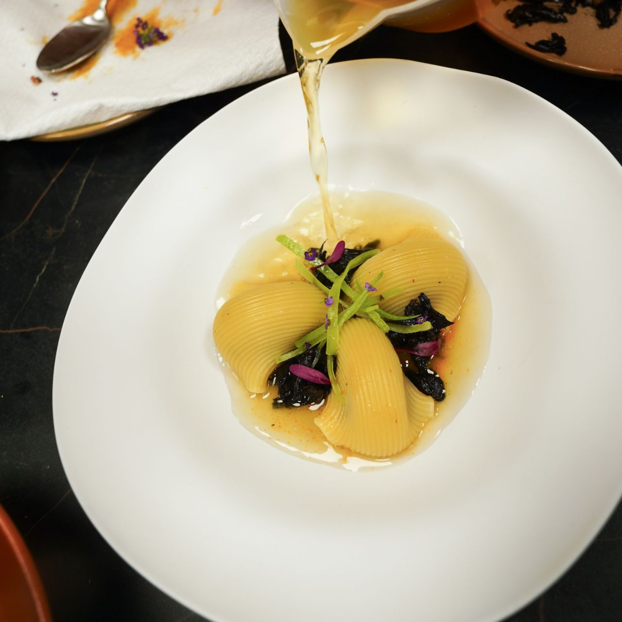 El encargado de darle forma a este menú festivo fue José María Borrás, el joven cocinero menorquín que está protagonizando una carrera fulgurante que, con 26 años, le ha llevado a ser director gastronómico de los hoteles Morvedra, en el restaurante Aquiara, y Amagatay que el grupo Annua tiene en Menorca, además de recibir un montón de premios y reconocimientos. Es enérgico, contagioso, técnico y aventurero. En sus brazos llenos de tatuajes destaca Remi, la rata protagonista de Ratatouille, de Brad Bird, que abandera un mensaje claro que él mismo mantiene: “todo el mundo puede cocinar”. Toda una declaración de intenciones.