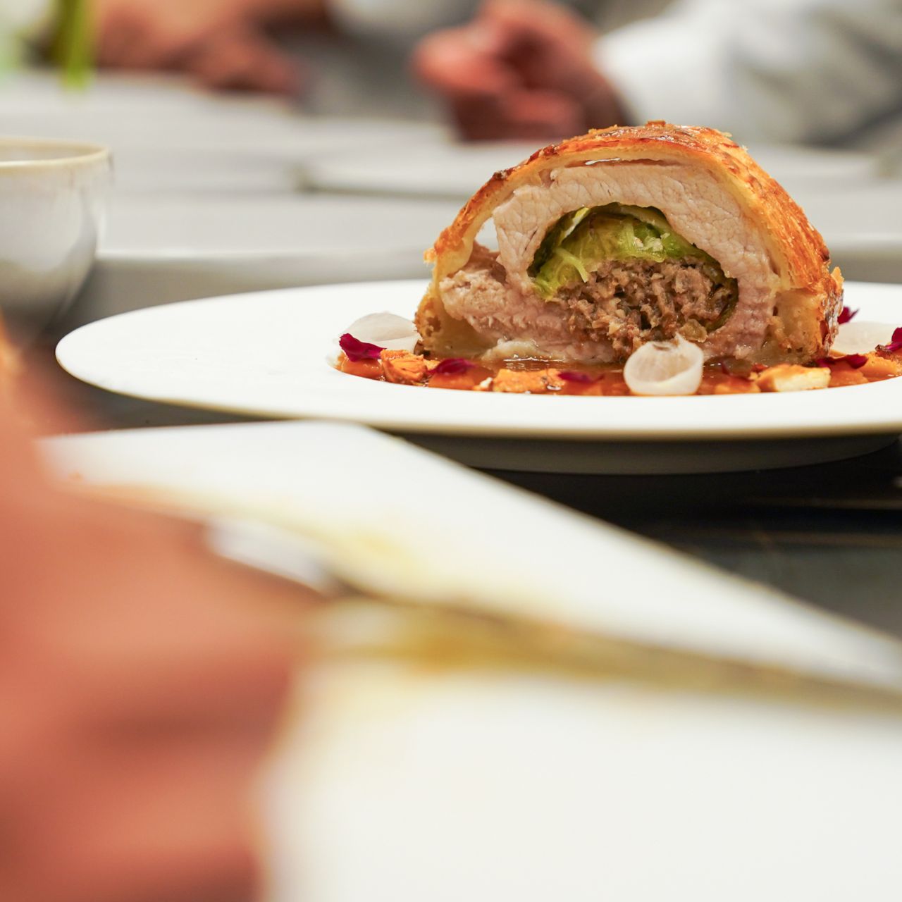 La sesión de diciembre de Chefs(in)Club tenía que ver con la cocina navideña, no podía ser de otra manera, y así fue: un Caldo de Navidad con galets rellenos de carne, un Hojaldre de solomillo relleno de carne y foie gras, y unas Galletas de Navidad. El caldo o la sopa es muy común en las islas, pero en el plato principal no hay unanimidad. Porcella o escaldums en Mallorca, capón relleno de cuscussó o calamares rellenos en Menorca, o el bullit pagès de Nadal en Eivissa, del que aprovechan el caldo para hacer la tradicional Salsa de Nadal.