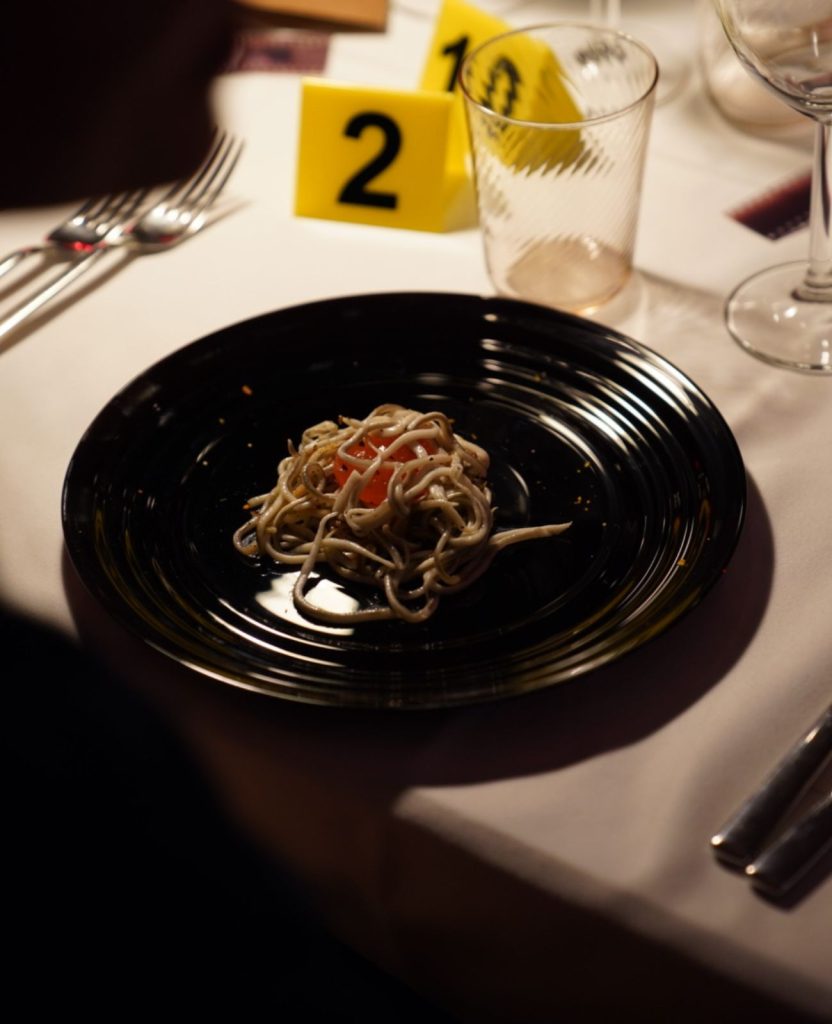 Pero para algunos eso sólo fue el principio. El público que había adquirido la entrada premium cruzó la línea definitiva y se adentró en el nuevo obrador de Ariadna Salvador, Ninumá. Allí, la experiencia se transformó en algo mucho más cercano a una escena del crimen que a una cena convencional. El espacio había sido intervenido para parecer sacado de una investigación criminal: atmósfera tensa, narrativa visual y, en cada plato que Ariadna había reinterpretado, una sensación constante de estar dentro de la historia. Porque lo del sábado no iba solo de comer, sino de sentir cada bocado como un capítulo de la historia.