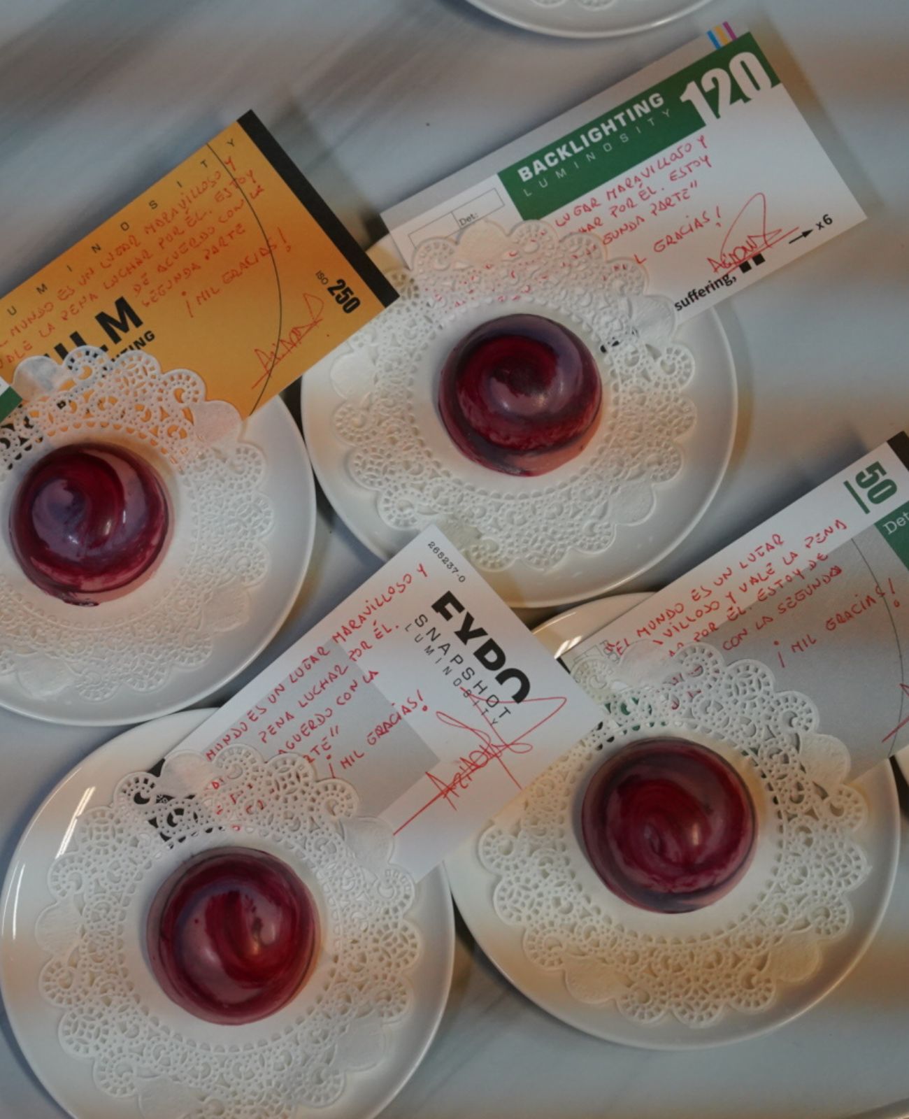 El aderezo del postre, entregado por una mensajera en una caja, fue el penúltimo paso de un menú completamente integrado en la película de Fincher. El último, ese bombón que obligaba a reconciliarse con el mundo, apareció acompañado de una frase con la que no podemos estar más de acuerdo: