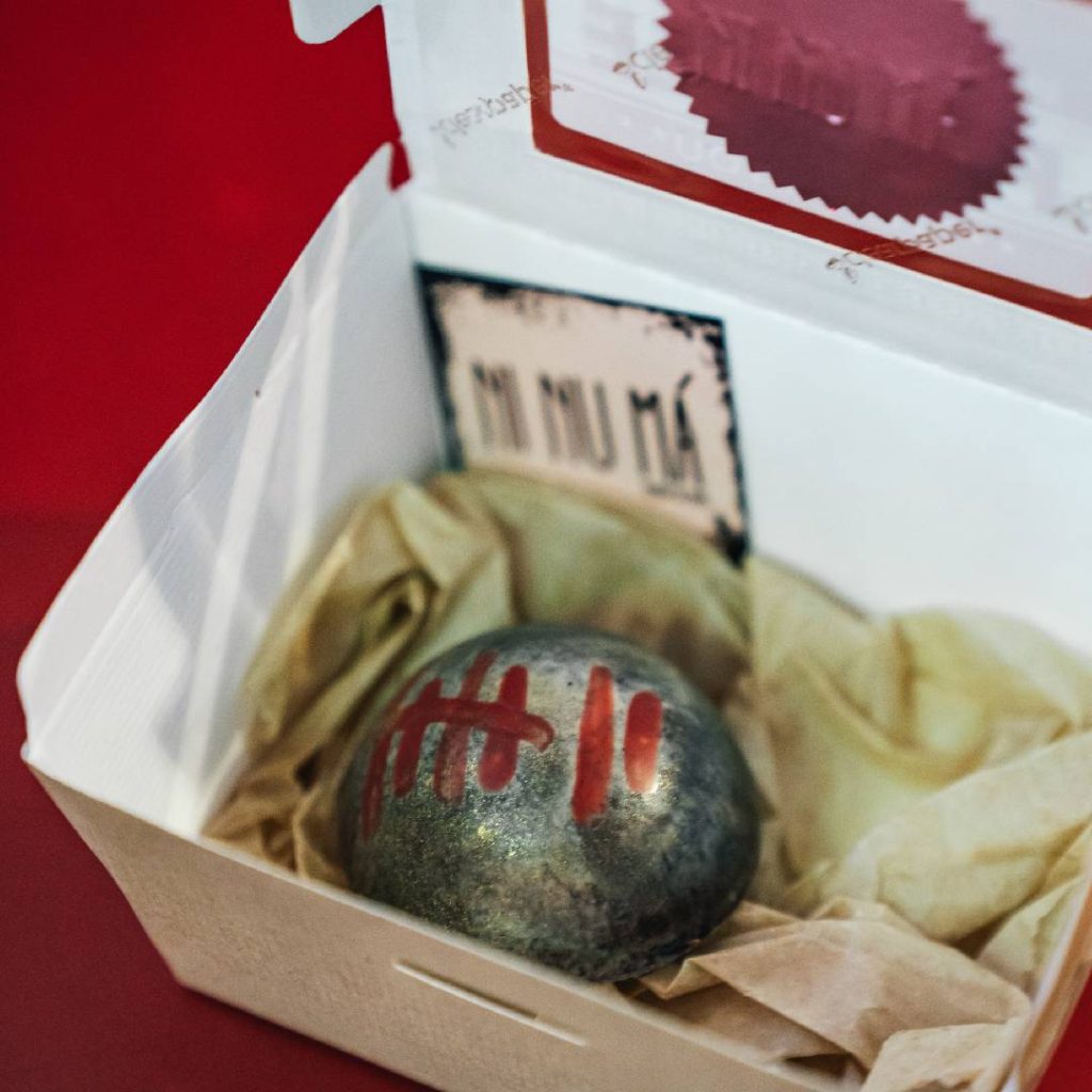 What ‘s in the box? Era un guiño al pecado: Muerte por chocolate. Cobertura 75%, ganache de gianduja, crujiente, chips de caramelos salado, corazón de pistacho y brownie. Un pecado que no pedía permiso, e iba directo al exceso y al paladar culpable.