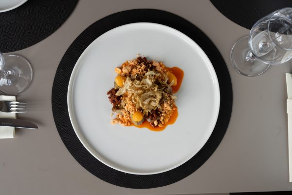 Desde los fogones de Sa Pleta by Marc Fosh, Joan Sevillano, cierra su menú degustación con un postre que podría ser un himno al cacao: Chocolate Arahuaco 82%, helado de naranjas en salmuera durante un año, gelatina de café y sable de mantequilla. Un bocado donde el amargor, el dulzor y lo salado dialogan en equilibrio perfecto. El contraste entre el chocolate tostado al punto y la naranja salada es espectacular.