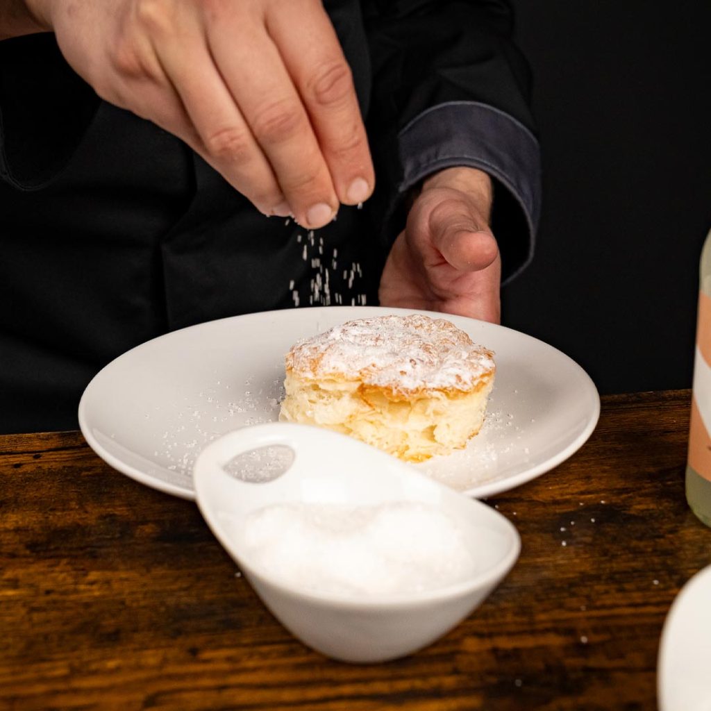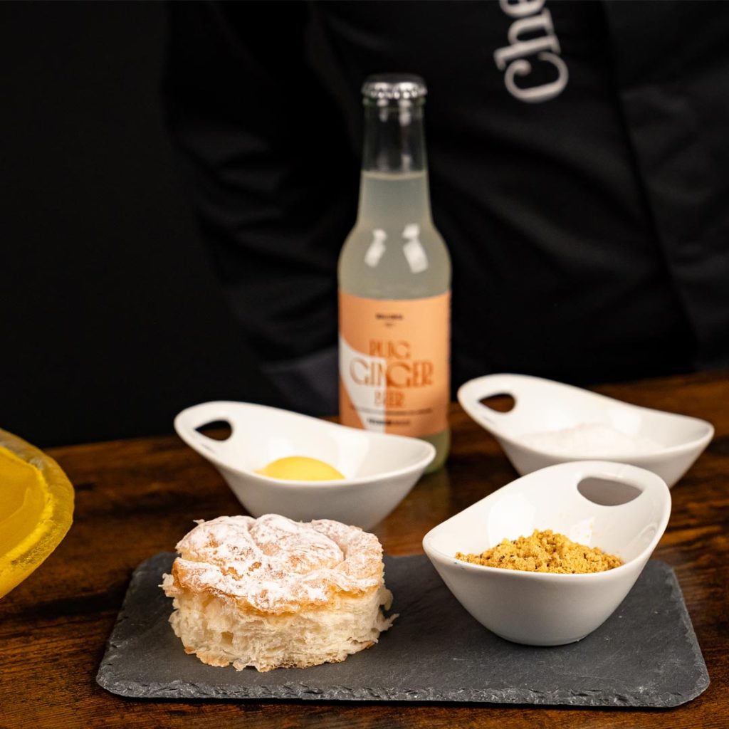 Pero un cóctel así pide un bocado. Así que les hemos pedido a algunos de nuestros Chefs(in) para que preparen bocados dulces o salados para el brindis, pensados para acompañar su dulzor, acidez y su profundidad otoñal. Combinaciones que equilibran el fuego y el frescor, el azúcar y la chispa, la técnica y el capricho.
