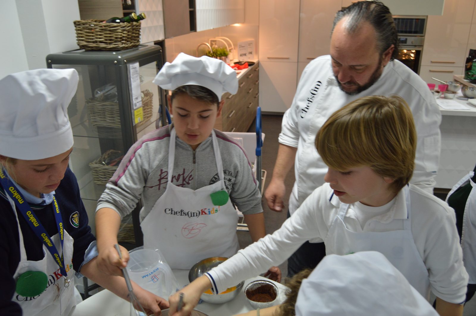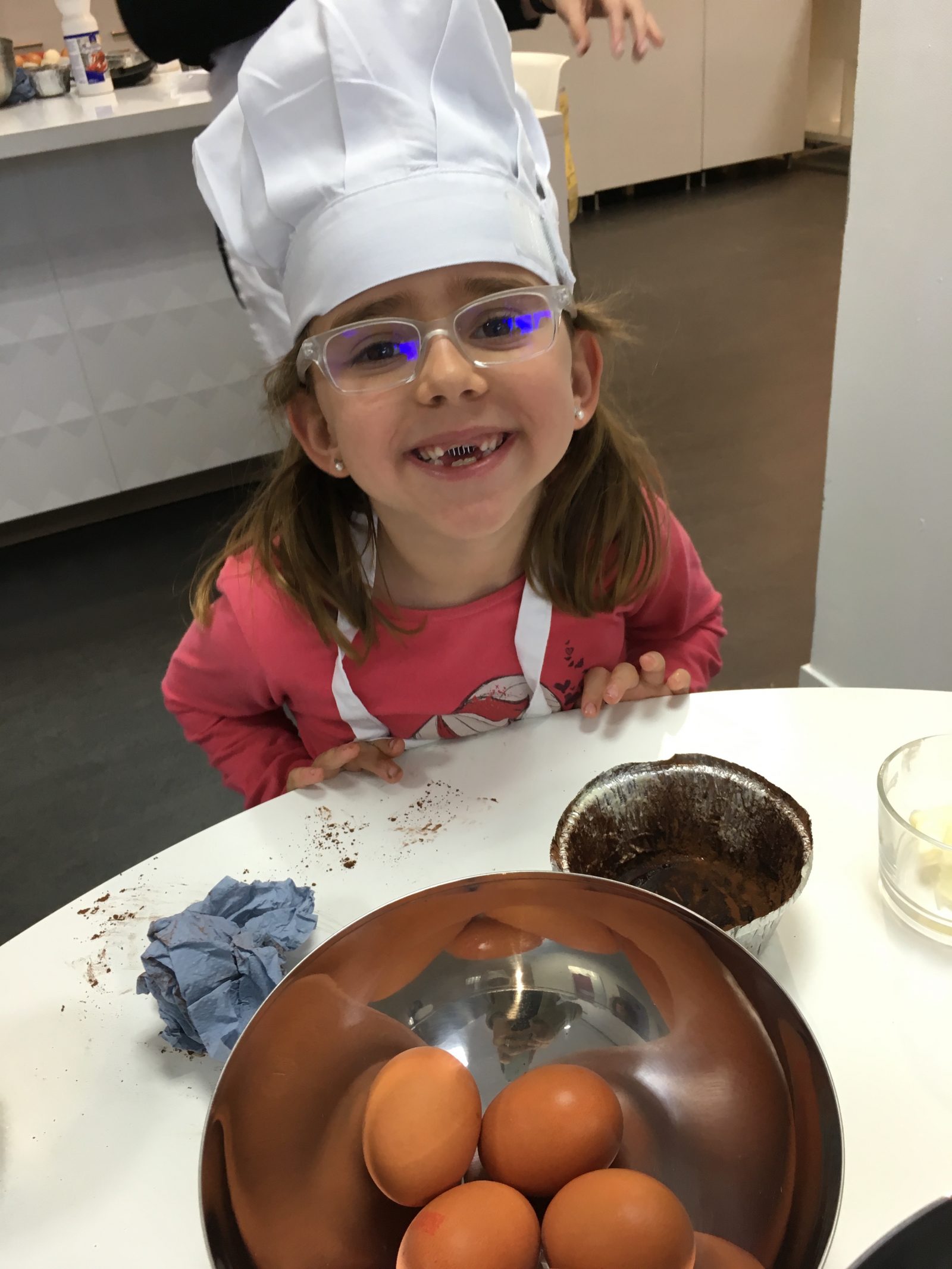 Los niños y niñas de Chefs(in)KIDS! han conocido este mes a Guillermo Méndez, chef del restaurante El Olivo (dos soles Repsol) del hotel la Residencia que les ha enseñado a preparar un sabrosísimo coulant de chocolate. Los aromas de la mantequilla y del cacao envolvieron rápidamente nuestra cocina de IKEA Palma con los hornos preparados a 190 grados.