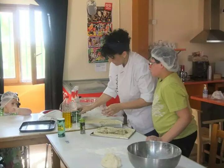 Trabajábamos todos con el mismo fin, con mucha atención, observando amasar el pan y tocando el pan crudo… Como bien digo yo siempre, la comida, el cocinar, unifica a los presentes.