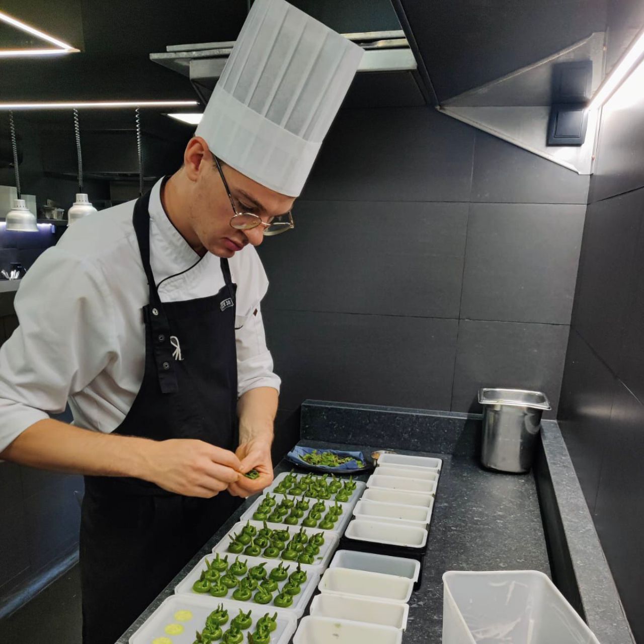 Aunque su vocación inicial era dietética y nutrición, descubrió que existía el grado universitario de ciencias culinarias y gastronómicas, que intercalaba dietética, nutrición y procesos químicos. Fue un profeso, Miquel Díaz, el que le llevó de la mano hacia los fogones. “Fue culpa de él” dice entre risas, que “a base de darme caña y enseñarme cosas, acabé sabiendo que me gusta la alta gastronomía. Hasta el día de hoy”.