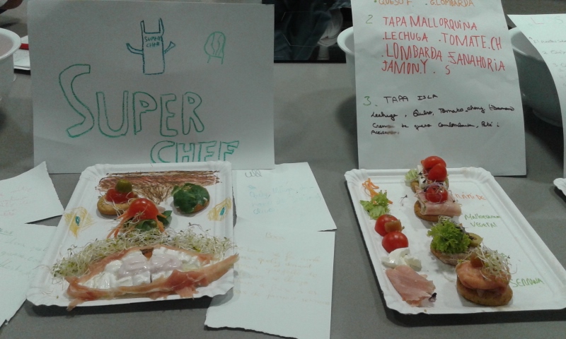 Una semana más nos colocamos los delantales en la cocina de Fundación Aedificat, esta vez para celebrar una competición en toda regla donde destacó el trabajo en equipo, el compañerismo y la creatividad. El reto no era fácil: crear 4 Quely Tapas por equipo, seleccionando y combinando los ingredientes teniendo en cuenta que se premiaba la tapa más creativa, la más sabrosa y la más nutritiva y que se concedía un premio especial al mejor trabajo de equipo. Pero además el chef Óscar Martínez aún lo complicó un poquito más porque cada tapa debía llevar al menos una verdura. Y, por supuesto, podían utilizar las especias de Especias Crespí para mejorar aún más el bocado. ¿El resultado? Increíble! Preguntad al señor Tomeu Quely cómo se lo pasó y cuál fue el nivel de las creaciones de los Chefs(in)Kids!