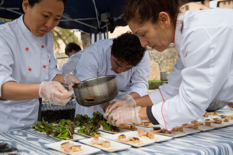 16 chefs, incluídos un coctelero y un equipo de la Escola d’Hoteleria de les Illes Balears, 3 bodegas (dos de Mallorca y una de Menorca), cafés, cerveza artesana… 29.000 raciones de cocina exquisita.