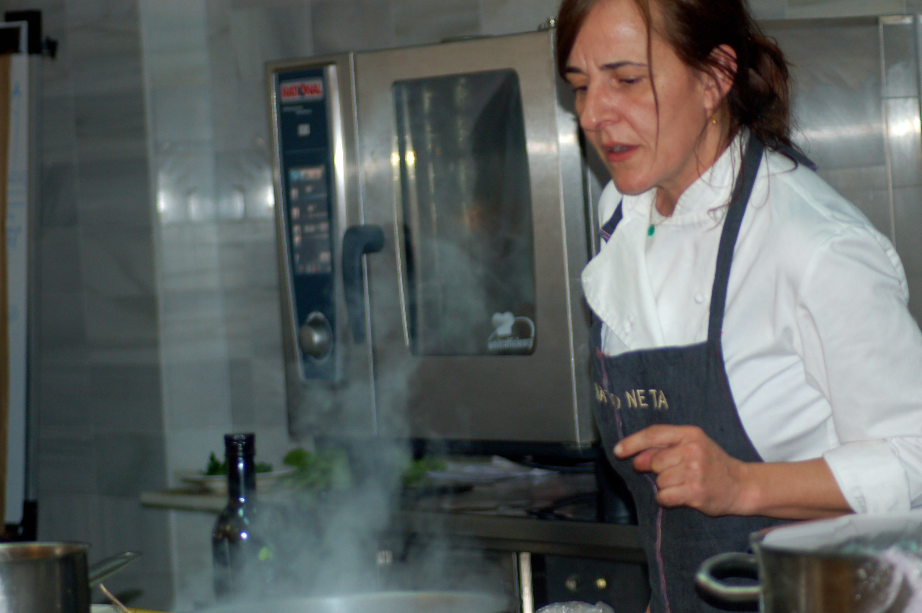 El periodista Andreu Manresa nos contó historias de esos tiempos, con la sabiduría de la experiencia y la curiosidad del que mira, pregunta, aprende y transmite. Así supimos de esa mujer payesa que le hizo prometer a su marido que jamás volveria a comer sopes; aprendimos que las pencas de las acelgas se transforman en exquisitos peixets (pescaditos); y reconocimos en la foto del aula Mestre Tomeu Esteva de la Escuela de Hosteleria al maestro andritxol que murió en 2010, a los 90 años, convertido en maestro de maestros otorgando la categoría que se merece a la cocina mallorquina.