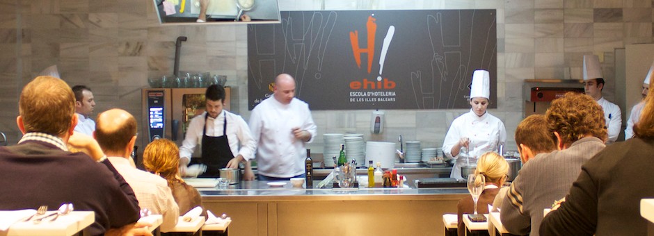 Cuarto curso de esta cuarta edición de cocina A4MANOS que realizamos en la EHIB (Escola d’Hoteleria de les Illes Balears) donde Mallorca y Menorca se han hermanado con Francia y su refinada cocina, de la mano de los chefs William Tétard (Ses Rotges, Cala Ratjada) y Patrick James (Pan y Vino, Sant Lluís). Marabans dio la bienvenida a los alumnos con un café avainillado con crema de Amareto, mientras tomaban asiento.